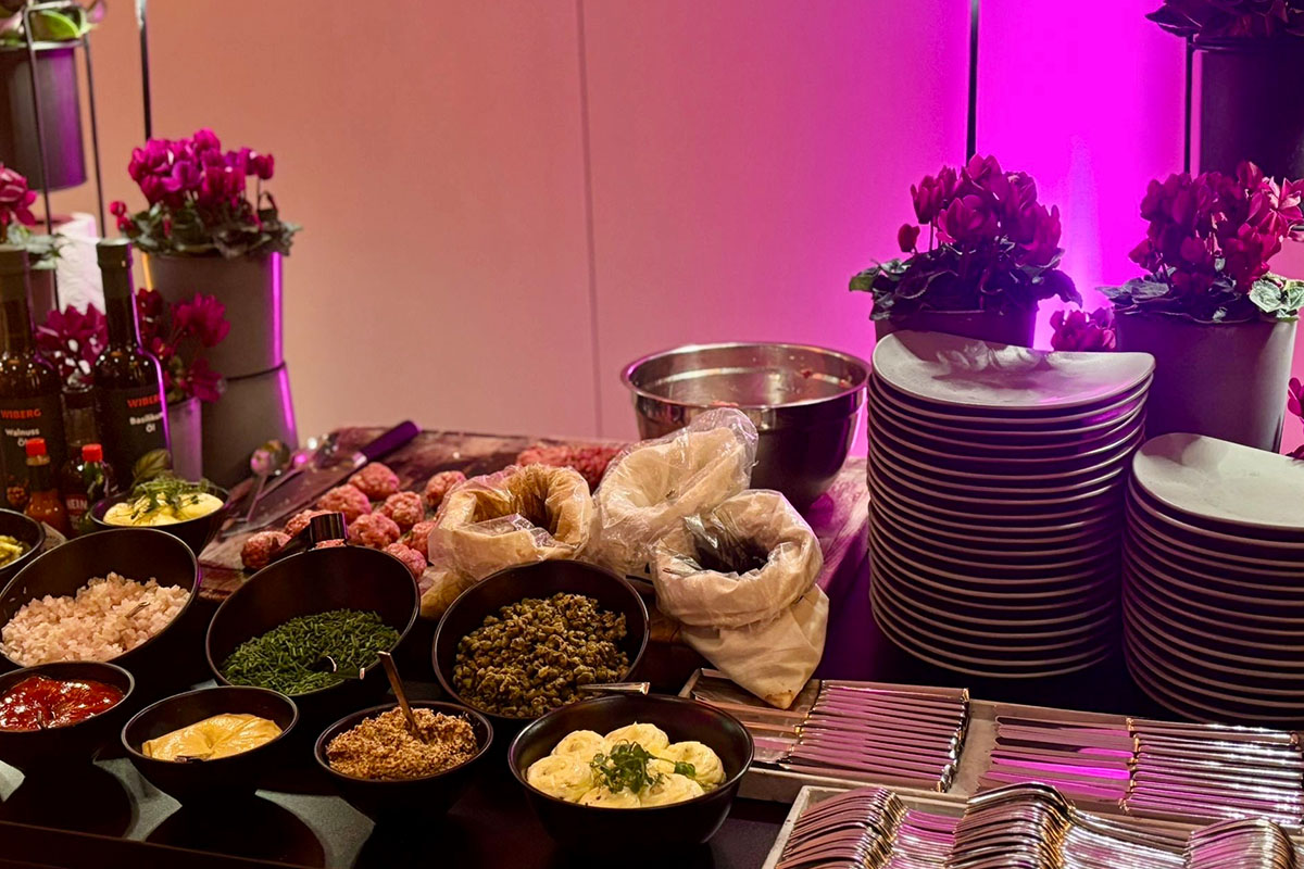 Unser Team arbeitet im Hintergrund wie ein eingespieltes Ensemble. Teller tauchen auf, verschwinden wieder, Live-Stationen entstehen dort, wo sich Menschen sammeln. Es ist dieses präzise Zusammenspiel aus Service, Timing und Inszenierung, das den Abend trägt – leise, verlässlich, wirkungsvoll. So wird aus einem Corporate Event ein Erlebnis, das bleibt.