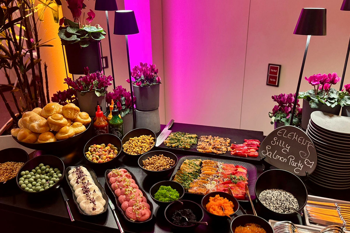 Licht wird weicher, Gäste treten näher. Die Auswahl an den Buffetstationen wird zum Gespräch, Beobachten wird zum Mitmachen. Aus einem Buffet wird eine Bühne, aus einem Raum ein sozialer Mittelpunkt. Genau hier wird sichtbar, was ELEMENTS Catering ausmacht: Catering als Erlebnisform, nicht als Versorgungspunkt.